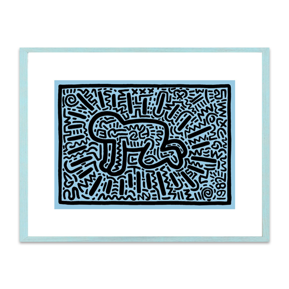 ヘリングの象徴的な作品を大判サイズの木製フレームに収めたポスター。壁に飾るだけでお部屋をポップで躍動感のある空間に。