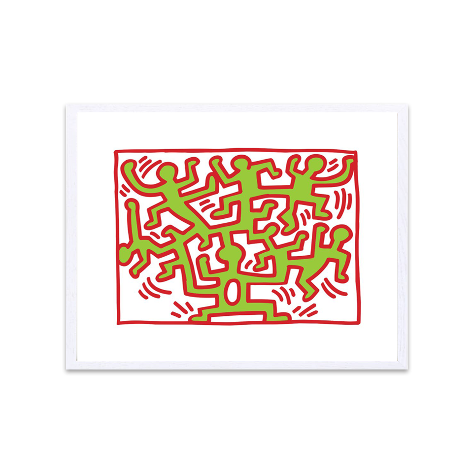 ヘリングの象徴的な作品を大判サイズの木製フレームに収めたポスター。壁に飾るだけでお部屋をポップで躍動感のある空間に。